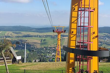Die Fahrt dauerte nur 5 Minuten und wir wurden mit einem wundervollen Weitblick belohnt. Anschließend ging’s zum Ahorn-Hotel am Fichtelberg, unserem Domizil für dieses Wochenende.