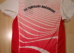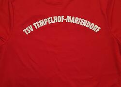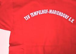 Zudem können in der TSV-Geschäftsstelle normale rote T-Shirts (100% Baumwolle) mit weißem Aufdruck „TSV TEMPELHOF-MARIENDORF“ (hinten) und Logo (vorne) erworben werden – von Größe 110/116 bis Größe XXL.