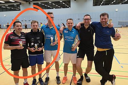 Am Samstag und Sonntag durften auch unsere hochbegabten Hochbetagten bei der LEM O35 in Potsdam aufschlagen. Gabi und Detlev starteten im Mixed ungewohnt gut, beendeten die Konkurrenz jedoch mit einer unnötigen Niederlage in der Vorrunde und einer zu erwartenden im Halbfinale gegen die späteren Sieger. Heraus kam ein guter 3. Platz im Mixed O45. Nächstes Jahr dürfen die beiden dann aufsteigen... Martin und Viet machten im Herrendoppel O40 den schlagkräftigen Gegnern das Leben auf dem Feld reichlich schwer. Knapp verloren sie gegen die späteren Vizemeister und waren trotzdem stolz auf den 3. Platz. Dafür gab es auch gleich einen begeisterten roten Kringel von Malte auf dem Foto!
