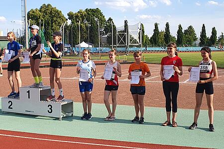 Am 8. Juni traten 5 Mädchen und 1 Junge (alle noch Jahrgang 2012, also Altersklasse W12 bzw. M12) bei den Berliner Meisterschaften im Blockwettkampf an. Dies ist ein 5-Kampf, bei dem zwischen drei Disziplinschwerpunkten gewählt werden kann. Im Block Lauf errang Leila bei 22 Mädchen Platz 7. Beste Disziplin war der Hochsprung, wo sie mit 1,32m Viertbeste war. Im Block Wurf der W12 kamen Lara, Elsa und Gjamira auf die Plätze 5,6 und 8. Elsa sprang hier erstmals über 4,00 Meter weit, zudem waren Elsa und Lara beim Diskuswurf die Besten aller Teilnehmerinnen. Im Block Lauf traten Viktoria (W12) und Simon (M12) an – bei 17 bzw. 9 Teilnehmenden konnten sich beide über den Berliner Meistertitel freuen. Während Simon bis zum Ende kämpfen musste und gegenüber dem Vizemeister letztlich mit 1.897 zu 1.868 Punkte die Oberhand behielt, hatte es Viktoria augenscheinlich etwas „leichter: Sie siegte mit 2.246 Punkten und hatte am Ende 239 Punkte Vorsprung - und verbesserte damit auch den 24 Jahre alten Vereinsrekord um 75 Punkte!
