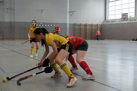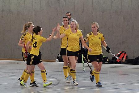 Wir gingen mit großer Zuversicht und Motivation in die Halle. Dort begrüßten uns viele Zuschauer, ob klein oder groß und natürlich waren die Kleeblattultras mit vor Ort. Die Stimmung war super. Die Partie begann sehr verhalten und wir versuchten uns erst einmal zu sortieren, da die Damen aus Steglitz sehr defensiv aufspielten. Nach einigen Minuten kamen wir besser ins Spiel und uns gelang es durch „Rippe“ das 1:0 zu erzielen. Jetzt hieß es nicht nachlassen. Wir wollten mehr, mehr Tore schießen. Das gelang uns auch durch eine schöne Eckenvariante von Muddi auf Sandra. Das 2:0 war gleichermaßen der Halbzeitspielstand.
