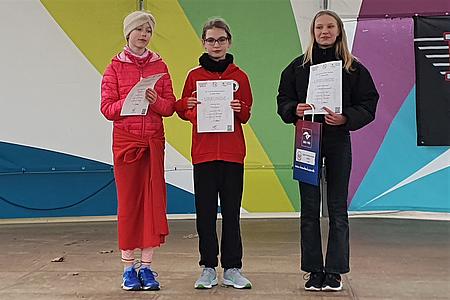 Die Altersklassen U14, U16 und U18 mussten eine große 3km-Runde bewältigen. Mila kam dort als viertes von 31 (überwiegend älteren) Mädchen ins Ziel und gewann damit die weibliche U14 in 12:43 Minuten. Max kam in seinem ersten Wettkampf in der U18 gleich auf Rang vier. Mark (männliche U16) und Naledi (weibliche U16) kamen jeweils auch Platz 8.