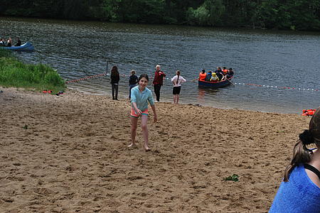 Der Morgen begann und viele Frühaufsteher hatten bereits wieder den Fußballplatz fest unter Kontrolle, ehe es um 8.30 Uhr zum Frühstück ging, danach wurde gebadet, ob freiwillig oder nicht, Kanu oder Ruderboot gefahren, Volleyball gespielt oder einfach nur rumgehangen bis es Mittag essen gab, man fühlte sich ein wenig wie im Urlaub, essen, eine Aktivität, essen, eine Aktivität, essen, schlafen usw.. Und so gingen alle teilweise schon ausgepowert von dem vielen Fußball zum Mittagessen, ehe uns um 15 Uhr unsere Strandolympiade erwartete, bei der alles dabei war, von Staffellauf, über Golf und Hütchenwerfen bis hin zum Wassertransport mit einem Strohhalm, natürlich aus dem See. Alle Kinder waren so beschäftigt, dass man die Zeit komplett vergaß und man im Anschluss bereits wieder zum Essen ging. Es folgte noch einmal eine Stöckerhol session, gepaart mit Kanu fahren und sobald die Sonne ein wenig tiefer stand auch noch die Siegerehrung der Strandolympiade und anschließend Stockbrot und Marshmallows. Der folgende Rest des Abends verlief dann noch deutlich ruhiger als am Vortag und so fielen alle kaputt ins Bett.