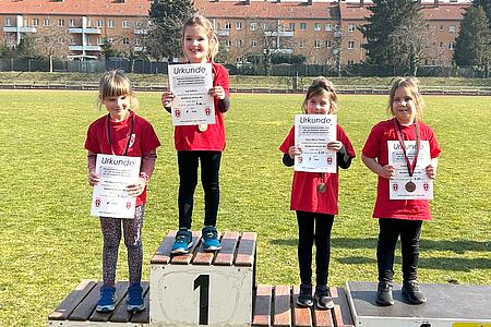 Die Altersklasse U6 (Jg. 2020) lief eine Strecke von 400m, hier traten fünf Kinder an. Bei den Mädchen gewann Emma Sofia vor Romy, bei den Jungen holte Leo Platz 1 vor Ferdinand. Für die Altersklasse U8 (Jg. 2018/2019) standen 600m auf dem Programm, 17 Kinder gingen hier an den Start. In ihren Altersklassen gewannen Lukas (M7), Adam (M6), Lea (W6) und Feline (W7).