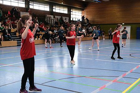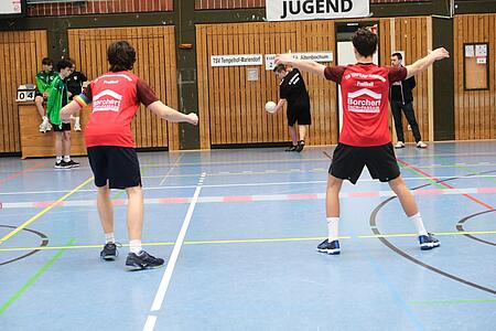Die Kinder ziehen sich um und kurz darauf sehen wir uns alle auf den Feldern in der Halle wieder. Dort trifft man bekannte Gesichter und letzte organisatorische Absprachen, zum Beispiel, wo man ein Schiedsrichter-Hemd herbekommen soll, wenn man seines zu Hause vergessen hat, werden getroffen.