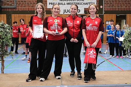 Gerade für die drei C2-Mädchen, ist es ein besonderes Abenteuer. Mit ihren elf Jahren gerade am Ende ihrer ersten C-Jugend-Saison angekommen, war es durchaus eine offene Frage, ob man diese Fahrt zu den Norddeutschen Jugendmeisterschaften nach Sottrum bei Bremen überhaupt antreten sollte. Es war von Vorneherein klar, dass man dort keinen Blumentopf würde gewinnen können, aber die Hoffnung, dass die Mädchen aus den Spielen, aus der Atmosphäre, aus dem Zuschauen bei den Großen, viel lernen können, war größer und so hatte man sich entschlossen, diese Fahrt gleich zu Beginn der Prellballerinnen-Karriere mitzumachen. An dieser Stelle sei schon einmal um Verständnis gebeten, dass ich meinen Fokus im vorliegenden Bericht auf die beiden Mädchen-Mannschaften legen werde, da ich als Betreuer der C2 und als Vater eines der C1-Mädchen dort natürlich am nächsten dran bin. Für die C1-Mädchen ist es zwar auch erst die zweite Meisterschaft (bis auf eine Spielerin, die bereits erfahrener war), aber da diese Mädchen mit ungefähr 14 Jahren auch deutlich älter sind und bereits im vergangenen Jahr tolle Erfolge feiern konnten (3. Platz bei den NDJM 2024 und 4. Platz bei den Deutschen Jugendmeisterschaften), sind sie jetzt natürlich die „alten Häsinnen“ hier.