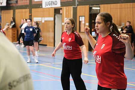 Meine weibliche C2 hat es nicht leicht. Gegen den MTV Eiche Schönebeck und den TuS Meinerzhagen gehen die ersten beiden Spiele kilometerhoch verloren. Das war gegen diese beiden starken Mannschaften zwar zu erwarten, aber natürlich ist es trotzdem nicht leicht, solche krachenden Niederlagen einfach so hinzunehmen. Ich wiederhole mich immer wieder, dass wir hier nur lernen können und wollen, und so kann man die beiden Abschussspiele fast schon amüsiert zur Kenntnis nehmen. Falls es irgendwen interessiert: Wir haben beide Spiele so ungefähr 56 zu 13 verloren. Die beiden anderen Gruppenspiele verlieren wir zwar auch, aber nicht ganz so extrem. Was auffällt: Die Mädchen spielen bei jedem Spiel besser. Man sieht die Lernkurve direkt ansteigen. Die Bewegungen werden mehr und mehr automatisiert, in der Abwehr steht man kompakter und langsam verrückt man schon seitlich, wenn die Angreiferin nicht frontal steht. Die Annahmen gelingen öfter und die Vorlagen werden verdaulicher. Hier ist Potential vorhanden. Und so beschließen wir spielerisch den Tag zwar als Gruppenletzte, aber doch frohen Mutes und ohne eine einzige Träne.