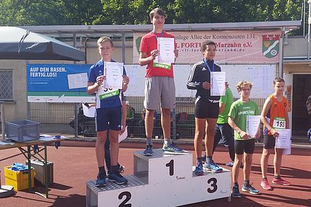 Die beste Platzierung erreichte Lars, der in der M13 im Diskuswurf mit starken 28,47 m die SILBER-MEDAILLE errang. Im Speerwurf wurde er zudem VIERTER, im Kugelstoß FÜNFTER.