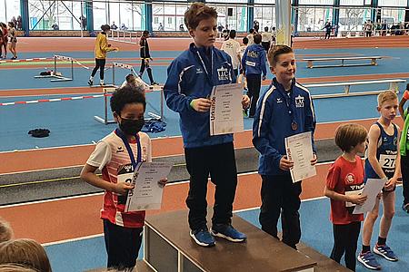 Bei den Jungen der M10 startete Mika in seinem erst zweiten Wettkampf über die 800m und konnte mit Platz 12 letztlich zufrieden sein. Simon schaffte es über 50m ins A-Finale, wo er um eine Hundertstelsekunde (!) die Medaillenränge verpasste und auf Rang 4 ins Ziel kam. Die Medaille holte er sich dann aber im Weitsprung - mit 3,72m wurde er Berliner Vize-Meister!