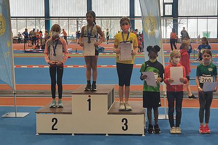Noch besser lief es dann im Weitsprung der W10: Bei 22 Mädchen kamen die TSVerinnen auf die Plätze 3 (Viktoria), 4 (Lara) und 6 (Leila)! Die Plätze 2 bis 4 waren hier mit 3,64m sogar weitengleich, sodass die zweitbesten Weiten herangezogen werden mussten - wodurch es Lara dann unglücklicherweie nicht aufs Treppchen schaffte.