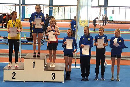 Weibliche Jugend U14: In der W13 trat nach diversen Absagen diesmal nur Hanka an - über die 60m gelang ihr dabei eine persönliche Bestzeit. In der W12 waren fünf TSVerinnen dabei. In der ersten Disziplinen, dem Weitsprung, kam keine an ihre Bestleistung heran, im Sprint lief es dann etwas besser. Mit einem starken 800m-Lauf gelang Vicky dann als bester TSVerin trotzdem noch ein Sprung nach vorne - sie errang bei 46 Teilnehmerinnen die BRONZE-MEDAILLE, Leila, Lara, Elsa und Gjamira können ebenfalls mit ihrem Wettkampf zufrieden sein. In der Mannschaftswertung schafften es die Mädchen noch auf Platz 8.