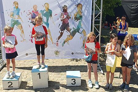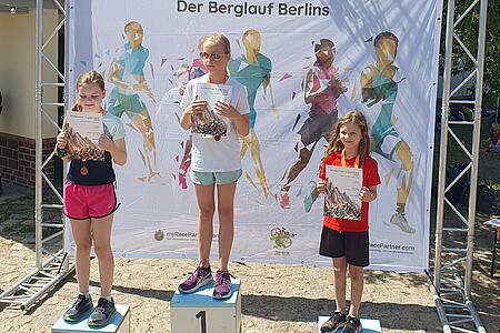 Die Läuferinnen und Läufer am 22. Juni hatten eine sehr hügelige Strecke von 1,2 km zu absolvieren, als „härtester Berglauf Berlins" beworben. Es ging fast ohne Schatten über Serpentinen im Freizeitpark Lübars mit insgesamt 25 Höhenmetern. Unter den 32 Teilnehmern waren 12 TSVerinnen und TSVer! Entsprechend gab es viele vordere Platzierungen. So gelang Amayelle mit einem selbstbewussten Lauf in der U14 ein Start-Ziel-Sieg, in 4:28 Min. und mit 14 Sekunden Vorsprung auf den ersten Jungen. Bei den U12-Mädchen gewann Ella als zweitschnellstes Mädchen ebenfalls ihre Altersklasse, Emely und Anni kamen auf die Plätze 4 und 6. Und bei den U10-Mädchen schaffte es Leyla auf Rang 3.