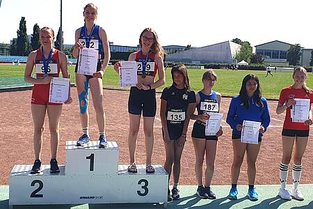 Am 14.6. gingen von ehemals sechs eingeplanten Mädchen leider nur drei an den Start. Im Block Lauf der W12 kam Amayelle bei 12 Teilnehmerinnen auf Rang 5, wobei sie über 800m die Zweitschnellste war. Über 60m-Hürden spielte nach ihrem Handbruch im Winter leider der Kopf noch zu viel mit. Bei der W13 im Block Lauf startete Vicky, die im Vorjahr (in der W12) hier Berliner Meisterin wurde. Als Beste über 75m und im Ballwurf sowie mit persönlichen Bestleistungen im Weitsprung und über 60m Hürden konnte sie letztlich bei 17 Teilnehmerinnen ihren Meistertitel verteidigen!