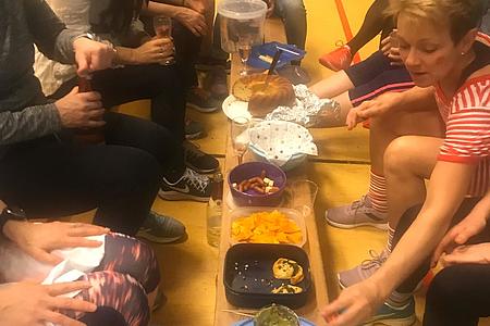 Na das lassen wir uns nicht 2x sagen. Und so kamen die, die an dem Dienstag Zeit hatten verkleidet. Unser Training bestand diesmal aus 1,5 Std. tanzen nach Stimmungsmusik auf einen riesigen Tanzfläche (Sporthalle). Natürlich wurden nebenbei die leckeren Häppchen verzehrt und wir hatten viel Spaß.