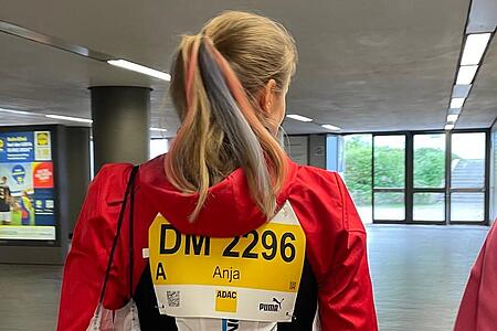 Anja ist relativ neu bei unserem Frauen-Lauftreff. Sie ist im November 2023 zu uns gestoßen. Uns fiel direkt auf, dass sie ziemlich ambitioniert und echt schnell ist. Sie trainierte zu diesem Zeitpunkt schon für ihren Start beim ADAC Marathon Hannover 2024, der die Deutschen Marathon Meisterschaften 2024 beinhaltet hat. Sie ist damit die erste Läuferin unseres Treffs, die an Deutschen Meisterschaften teilgenommen hat. Die ganze Laufgruppe fieberte am 14. April 2024 online mit. Wir konnten dank der heutigen Technik ihre Splits alle 5 Kilometer mitverfolgen. Sie lief mit einer Nettozeit von 3:40:09 ins Ziel und wurde 7. in Ihrer Altersklasse und 70. in der Frauengesamtwertung. Wir gratulieren zu dieser großartigen Zeit.