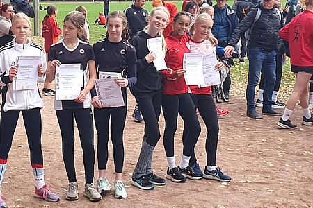 Jugend U14 (Jg. 2012/2013), ca. 2,6 km: In der W12 kam Amayelle bei 22 Mädchen auf Rang 4 ins Ziel. Vicky und Leila belegten in der W13 die Plätze 12 und 14. Zusammen schafften sie es in der Mannschaftswertung auf Platz 7.