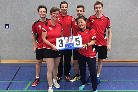 Im letzten Spiel, dem Mixed, lief es nach anfänglich sicher gewonnenem ersten Satz nichtmehr so gut. Marian und Britta lagen 7-11 im dritten Satz hinten. Mit großer Unterstützung der fast heimisch wirkenden Kulisse kämpften sie sich zurück ins Spiel. Durch die Stimmung beflügelt drehten sie den Punktestand und gewannen zu 20.