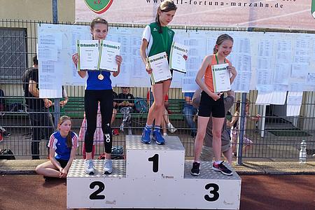 Bei den Mädchen der W12 wurde Anneline über 60 m Hürden ebenfalls Dritte, Jolina wurde bei den W11 im Weitsprung und über 50 m jeweils Zweite. Anja zeigte vor allem im Weitsprung sehr gute Leistungen.