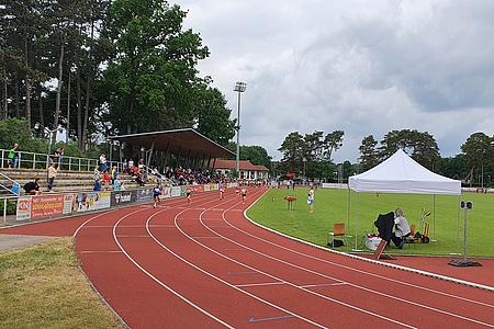 Am Vorabend mussten alle einen Schnelltest machen lassen, beim Wettkampf selbst waren keine Zuschauenden gestattet. Für die U12 standen ein Dreikampf, bestehend aus 50m-Sprint, Weitsprung und 80g-Schlagballwurf, sowie 800m auf dem Programm. Temperaturen um die 20 Grad sowie glücklicherweise nur vereinzelte Regenschauer boten recht ordentliche Bedingungen.
