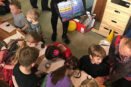 konnten sich die Kleinen und Großen mit Getränken, Bananen, Äpfeln und Keksen stärken. Wer sich noch nicht geschminkt hatte, war bei Laura (Helferin) gut aufgehoben.