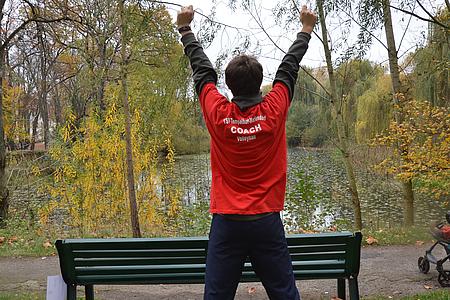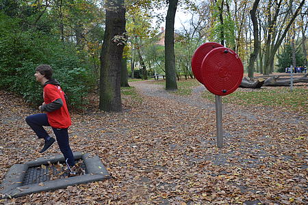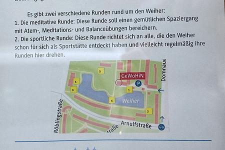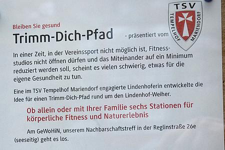 Um trotzdem nicht auf Bewegung zu verzichten und gefühlt etwas „Gemeinsames“ zu machen, haben wir einen Trimm-Dich-Pfad im von der „GeWoSüd“ verwalteten Lindenhof installiert.
