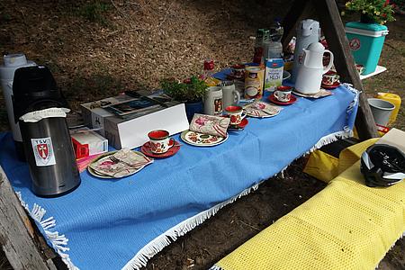Im August startete wieder unsere diesjährige Vereinsfahrt mit unserem Radsportteam. Sie fiel dieses Mal etwas kleiner aus als sonst. Aus organisatorischen Gründen und verletzungsbedingt haben wir unsere Fahrt durch die Uckermark storniert. Dafür ging die Tour durch die fast heimischen Gefilde im südlichen Umland. Obwohl wir nur einen Tag unterwegs waren, ging es nicht weniger lustig und entspannt zu. Helmut konnte zwar nicht Rad fahren, sorgte aber dennoch auf der Strecke für unser leibliches Wohl. Uns erwartete zunächst ein ausgiebiges Frühstück (zum Frühstücken waren wir in Stücken…) und später Kaffee und Kuchen. Natürlich gab es ausreichend Getränke, was bei der Hitze durchaus notwendig war. In den letzten Jahren waren wir einmal an der Havelquelle und einmal an der Nuthequelle. Dieses Jahr hatten wir unsere eigene Quelle dabei…