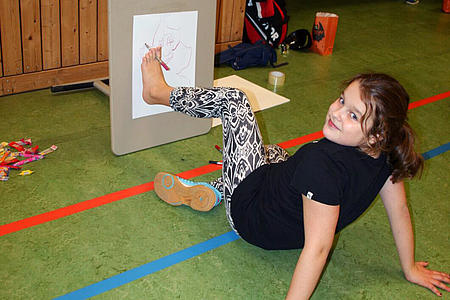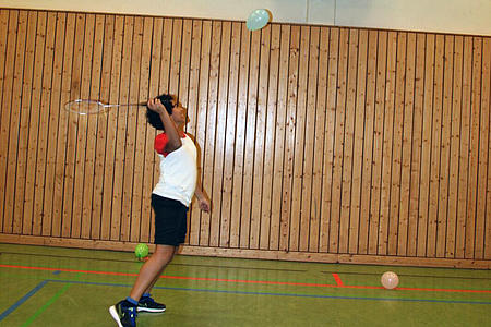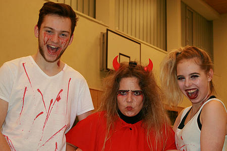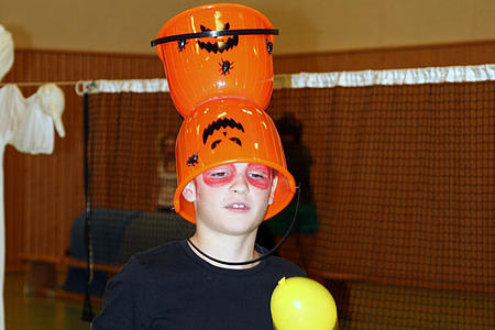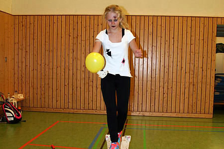 Neben einem tollen, durch die lieben Eltern ausgestattetem Büffet zur Stärkung zwischendurch konnte man sich an unterschiedlichen, teils kniffeligen Stationen seine Süßigkeiten sammeln. Spaßig wurde die Geschicklichkeit und Koordination gefordert. Wie werfe ich schaukelnd einen Ball mit den Füßen in den Kasten oder male mit dem Fuß ein Gespenst? Einen Luftballon in den Basketballkorb schlagen oder mit einem Eimer auf dem Kopf auffangen? Schwerer als gedacht!