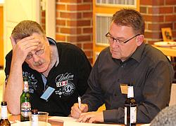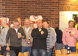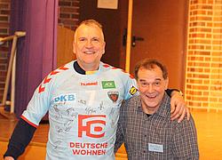 Anschließend quälten sich einige Hartgesottene dann durch das Veteranenquiz, bei dem Google so gar nicht auskunftsfreudig war. Der fast noch jugendliche Christian Sommerfeld ersteigerte zu Gunsten der TSVTM-Handballjugend ein signiertes Füchsetrikot, das ihm auch wirklich ausgezeichnet passte. Mit etwas Mühe saß es absolut faltenfrei.