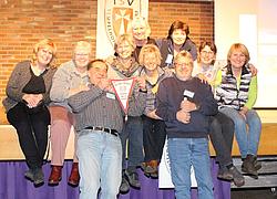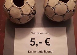 Zwischendurch wurde immer wieder dem üppigen Buffet zugesprochen, das mit Hilfe einer Doodle-Liste nur durch die Mitarbeit der Teilnehmer selbst zustande gekommen war. Der eine oder andere anwesende Veteran hat zudem wohl ab und an auch mal einen Schluck der geistigen Erfrischungsgetränke zu sich genommen, die von Familie Sommerfeld – wie auch früher schon so oft – in ausreichender Zahl angeboten wurden. Die beiden ausliegenden, zu Spendenbüchsen umfunktionierten Handbälle, wurden zudem immer wieder in erfreulichem Maße gefüttert, sodass der Handballabteilung nach Abzug aller Kosten eine Spende von 620,00 Euro für die Jugend übergeben werden konnte.