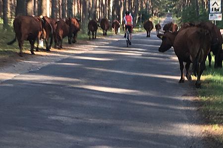 Am Sonntag gab es eine weitere Erfrischung, denn wir fuhren auf Waldwegen an vielen Seen vorbei über Wustrow nach Neu-Globsow zum Stechlin-See. An sich wären wir gerne länger im See geblieben, aber wir mussten ja noch wieder die Heimreise nach Berlin antreten. Die Tour führte auch wieder durch Waldgebiete, so dass die Hitze erträglich war.
