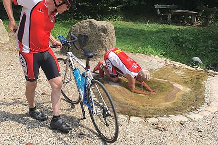 Auf der diesjährigen Teamfahrt am vergangenen Wochenende haben wir das nördliche Brandenburg sowie das südliche Mecklenburg-Vorpommern erkundet. Von Berlin ging es zunächst ab Lehnitz und Oranienburg nach Rheinsberg. Am nächsten Tag sind wir von dort gestartet und immer Richtung Norden gefahren. Über Mirow und durch den Müritz-Nationalpark führte uns die Route zur Havel-Quelle bei Ankershagen. Dort sprudelte tatsächlich kühles Wasser aus der Erde. Das war bei der vorherrschenden Hitze natürlich eine tolle Erfrischung für alle. Manche mussten sogar ihren Kopf in das klare Wasser halten. Bei einer Temperatur von 30 Grad war die Havel-Quelle das optimale Ziel unserer Tour. Es ist allerdings kaum vorstellbar, dass die Havel, von der wir dort oben nur einen Rinnsal gesehen haben, schon nach 12 km schiffbar ist und insbesondere bei Berlin so viel Wasser führt, dass große Seen entstehen.