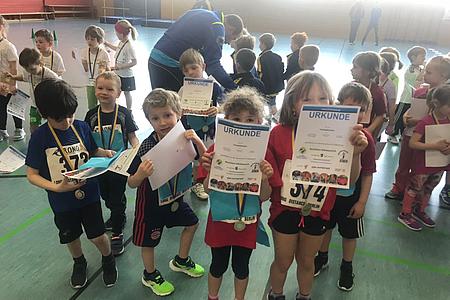 Einen „Stargast“ für die Kinder gab es auch, Berlino, das Maskottchen der Leichtathletik EM 2018. Den Kindern, als auch den Trainer hat es großen Spaß gemacht. Am Ende gab es für alle eine Medaille und eine Urkunde, worauf die Kinder sehr stolz waren. Die Stimmung in der Halle war großartig und die Eltern feuerten ihre Kinder lautstark an.