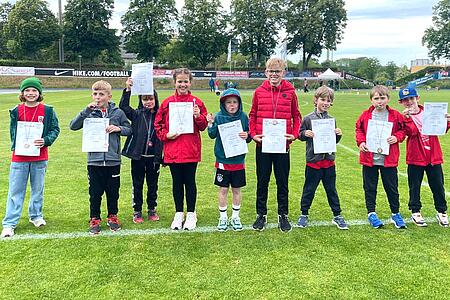 Das U10-Team namens „Tempelhofer Tausendfüßler“ bestand aus Benno, Emilian, Julia, Julian, Juna, Karl, Levin, Max I, Max II, Noah und Theda. Disziplinen waren Heulerwurf, Hindernis-Pendel-Staffel, Weitsprung-Staffel und 40m-Sprint. Bei 21 Teams schaffte es der TSV TM auf einen sehr starken 4. Platz! (Beim Wurf war Max sogar von allen 180 U10ern der Beste!)