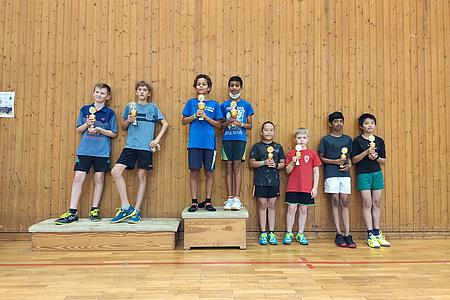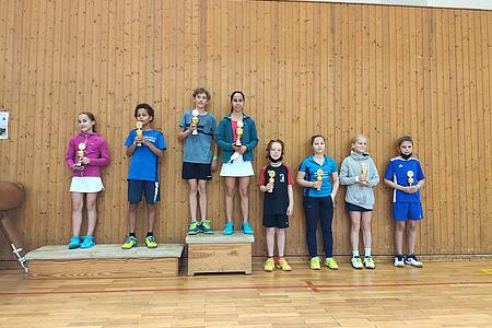 Obwohl Trung und Gregory mit U13 eine Altersklasse höher spielten, wurden sie aufgrund älterer Erfolge auf 7 und 8 gesetzt. Trung verließ die Gruppenphase als Gruppenerster und durfte sich somit einem tollen Spiel gegen den späteren Landeseinzelmeister stellen. Mit wahnsinnig tollem Ehrgeiz wurde jeder Ball hart umkämpft, mitunter fürchtete man bei einigen Flugeinlagen um Blessuren an den Knien (sofern sie denn überhaupt heile blieben...). Gregorys Nervosität übernahm leider immer wieder die Überhand, wodurch er als Gruppenzweiter nicht in die KO-Runde kam. Anabell und Moritz spielten sich gut durch die Gruppenphase und zeigten von Satz zu Satz eine Verbesserung und meist auch mehr Punkte.
