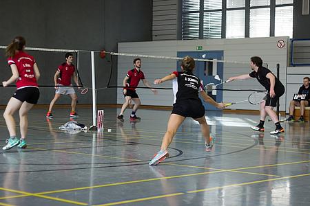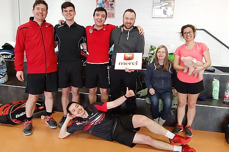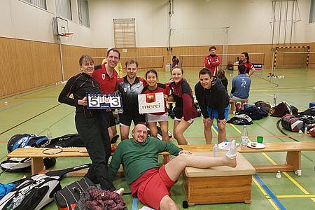 Die 5. Mannschaft stand auch schon als Aufsteiger fest, als sie nach Seeburg zum Spiel beim DRV Bund fuhren. Jedoch schenkten sie der Heimmannschaft nichts und gewannen 5:3. Detlev spielte dabei seinen deutlich jüngeren aber konditionsschwächeren Gegner im 3. HE an den Rande des Zusammenbruchs. Valentin und Micaela lieferten in ihrem ersten Mixed eine konzentrierte, starke Leistung ab, und Hugo "allez les Rouges" legte eins seiner besten 1. HE aufs Parkett. Zusammen mit beiden gewonnenen Herrendoppeln konnte so auch der Meistertitel in der B-Klasse eingefahren werden. Glückwunsch! In Abwesenheit ihres Mixedbuddies Dennis schlotterten bei Melinda leider im DE die Knie so sehr, dass sie sich eines verdrehte und aufgeben musste. Auch Dir gute Besserung, Melinda!!!