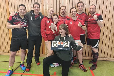 Die 5. Mannschaft hatte unter der Woche im vorletzen Saisonspiel 2:6 gegen KWO IV verloren. Damit gab es vor dem letzten Spieltag in der B-Klasse die unglaubliche Situation, dass nur ein Aufsteiger bisher feststand und die anderen 7 Mannschaften alle ein solch ausgeglichenens Punktekonto hatten, dass jeder noch hätte aufsteigen und absteigen können... Am Samstag musste also beim Auswärtsspiel im Preußenpark unbedingt ein Sieg her! In der kühlen Halle brachten Niklas und Laura jedoch in ihren Einzeln die Zuschauer und Mannschaftskollegen so richtig zum Kochen. Niklas gewann mit 22:20 im 3. Satz das 1. Herreneinzel, und Laura konnte mit 22:20 und 21:17 einen weiteren wichtigen Punkt einfahren. Die beiden Herrendoppel siegten souverän, und mit Micaelas und Duns Mixed sowie dem Sieg von Roderick im 2. Einzel wurde das Traumergebnis perfekt gemacht und der Klassenerhalt in der B-Klasse gesichert. Herzlichen Glückwunsch auch an TSVTM V!!!
