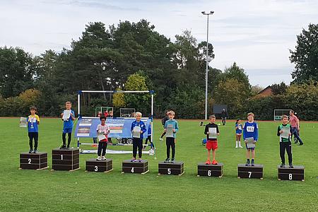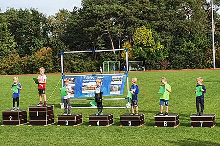 Bei den Jungen der Altersklasse M5 (Jg. 2016) hatte Max seinen ersten Sportplatzwettkampf überhaupt - und was für einen: Bei 12 Teilnehmern setzte er sich durch und gewann den Wettkampf! Selbiges gelang Florian bei den Jungen der M7 (Jg. 2014) - er gewann bei 23 Startern deutlich. Hervorzuheben ist dabei sein Schlagballwurf mit 28,00m! Jakob, Lovis und Leonard hatten hier ihren ersten Wettkampf überhaupt und landeten mit Platz 10, 13 und 14 im guten Mittelfeld. In den Altersklassen M8 (Jg. 2013) und M9 (Jg. 2012) holten die TSVer bei 25 bzw. 24 Teilnehmern mit Mats und Simon jeweils den dritten Platz! Tim und Luka landeten in der M8 jeweils im Mittelfeld.