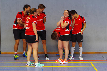 TSVTM I: "...Auf die Plätze fertig los. Und so starteten wir souverän mit 2:0 nach dem Damendoppel und dem ersten Herrendoppel. Leider kamen wir danach ins stolpern und ließen den Gegner zurück ins Spiel kommen. In Zahlen gesagt: 2:0 ; 2:2 ; 3:2 ; 3:3 ... 3:5 (aus unserer Sicht)..."