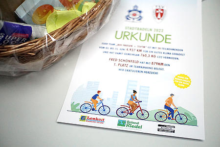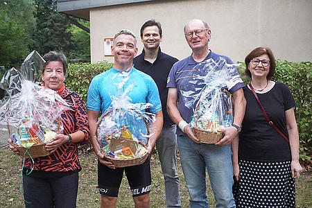 Bei einem Radler und Kuchen wurden die Urkunden und Präsentkörbe überreicht.