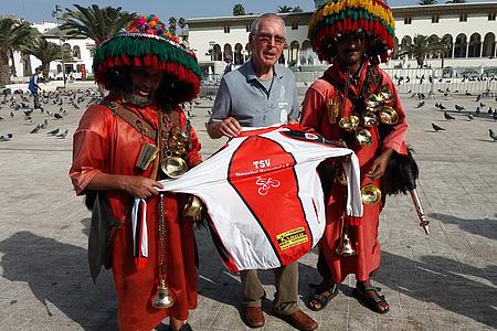 Die Straßen waren im Großen und Ganzen recht gut, so dass man problemlos mit dem Rennrad fahren konnte (wir hatten unsere Räder im Flugzeug mitgenommen). Durch die großen Städte und zu den Hotels haben wir allerdings den Bus genommen, denn der marokkanische Verkehr ist doch etwas chaotischer als bei uns. Dabei sind die Autofahrer den Fahrradfahrern gegenüber durchaus wohlgesonnen. Auf den Landstraßen wurde uns zugewinkt oder wir wurden zur Begrüßung freudig angehupt. Überhaupt waren die Leute sehr nett. Ein „Bonjour“ von uns im Vorbeifahren löste oft Begeisterung aus.
