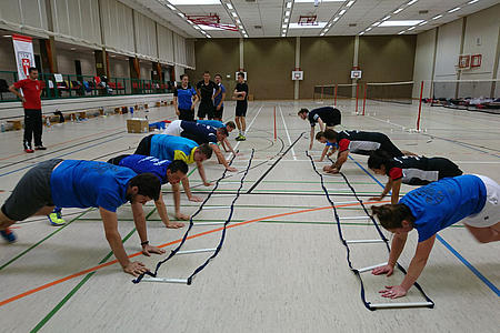 Die ersten 17 Teilnehmer trafen bereits ab 18:00 Uhr ein und präparierten die Halle. So ermöglichten sie uns eine pünktliche Begrüßung um 19:15 Uhr und den Start in die erste Trainingseinheit.