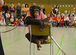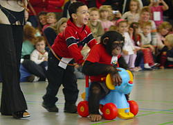 Höhepunkt war die Show mit außergewöhnlichen Tieren. So wurde u.a. eine lebendige Schlange präsentiert. Zudem sorgte ein Schimpanse mit seinen Kunststücken für große Heiterkeit sowohl bei Kindern als auch Eltern.