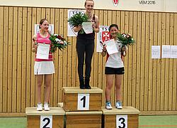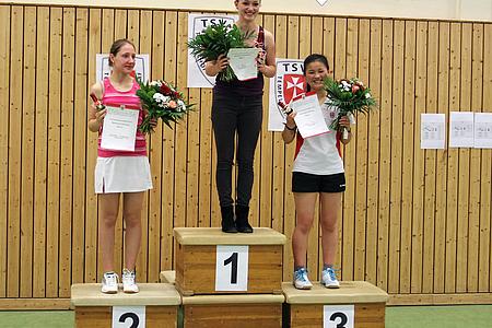 Anders als die Herren, wurden bei den Damen Gruppenspiele ausgetragen. Jeweils 4 Spielerinnen pro Gruppe lieferten sich oft knappe Spiele. Verletzungsbedingt musste Ronja leider bereits nach dem ersten Spiel aufgeben. Nach Ende der Gruppenspiele traten jeweils die Gleichplatzierten aus jeder Gruppe gegeneinander an um die Treppchenplätze auszuspielen. In einem hart umkämpften Spiel setze sich Sonia H. am Ende in drei Sätzen gegen Sonja S. durch und erlangte dadurch den dritten Platz. Johanna landete auf dem zweiten Platz und Pia erlangte den Titel der Vereinsmeisterin 2015.