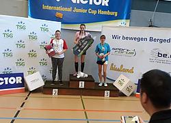 Katharina startete als letzte, verspätet erst um 16:50 Uhr. Schöner glatter Durchmarsch bis in Halbfinale. Dies fand allerdings erst zur viel zu späteren Uhrzeit für U13 um 21:40 Uhr statt. Hinzu kam eine Konkurrenz, welche sich auf deutscher Ebene bewegt. Gewohnt mit vollem Kampfwillen und durchgezogener Körperspannung, gelang ihr ein bestauntes Spiel und mit 16 und gesteigerten 19 Punkten die klare Erkenntnis, der Gegnerin Konkurrenz bieten zu können. Trotz allem blieb die sichtbare Enttäuschung leider nicht aus und im Spiel um Platz 3 um 22:30 Uhr waren auch ihre Nerven und die Körperkraft, mehr als verständlicher Weise!!! geschwächt. Auch hier auf eine bekannte, leistungsstarken, auf der norddeutschen Ebene spielenden Gegnerin, erreichte sie schließlich ihren gesetzten Platz 4. Aber von allen Spielern gelang ihr die beste Spielleistung im Einzel, somit Platz 1 in der Spielerwertung :)