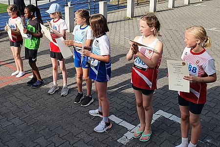 Alle zehn Mädchen absolvierten einen Dreikampf, bestehend aus Sprint, Weitsprung und Ballwurf. Bei entsprechend 30 Leistungen sprangen dabei nicht weniger als 24 persönliche Bestleistungen heraus!