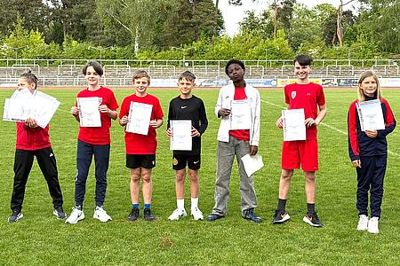 Das Jungenteam bestand diesmal ausschließlich aus TSVern, was das Zusammenstellen einer schlagkräftigen Truppe besonders herausfordernd machte. Nach mehreren Absagen gingen wir letztlich mit einem großen Team von 11 Jungen an den Start. Und diese schlugen sich als Team sehr stark – ihr 5. Platz bei 8 Teams war eine ebenso starke Leistung wie der 2. Platz der Mädchen. Punktbeste Einzelleistungen waren der Weitsprung von Simon und die 75m von Zion. Und auch den Jungen gelang in der Staffel - hier mit guten Wechseln - ein neuer StG-Rekord. Das Team bestand aus: Alex I, Florian, Helge, Leonard, Mats I, Mats II, Ruben, Simon, Til, Tim und Zion.