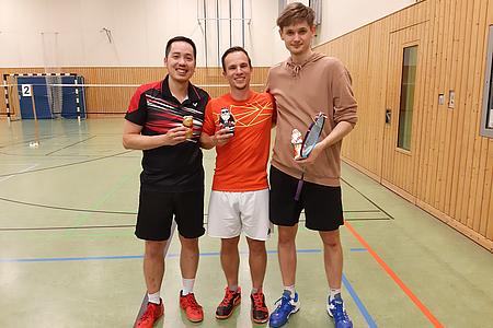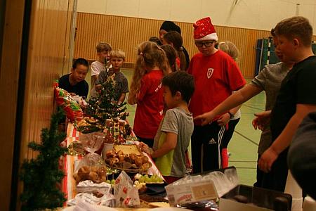 "Die Großen" spielten unter der Turnierleitung von Sportwart Benjamin und seinen Helfern Detlev und Gabi ("Schleifchen schneiden, Gabi, sonst gibt es keinen Nikolaus!") das altbewährte Schleifchenturnier. Natürlich mit entsprechenden Pausen, um dem leckeren Büffet zu frönen oder im Takt der Weihnachtsmusik zu schunkeln. Nach fünf Runden standen als Sieger Dennis, Niels und Viet fest, die sich über die errungenen Schoko-Trophäen freuen durften. Danach ging es munter im Freien Spiel weiter und die flüssigen und festen Reste des Büffets wurden fröhlich vertilgt. Die sich munter durchs Büffet trüffelnde TSV-Sau wurde erfolgreich gejagt und darf sich nun drei Wochen bei Viktoria erholen, bis sie am 11. Januar wieder beim ersten Heimspiel 2020 auflaufen muss.